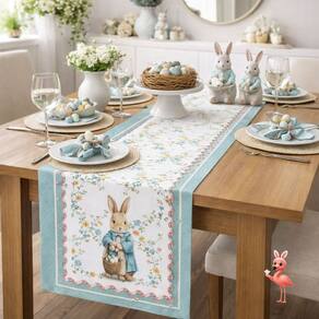 Ideal para mesas de jantar aparadores ou mesas de apoio o caminho de mesa combina facilmente com guardanapos lugares americanos e toalhas da mesma linha criando uma decoracao pascal coesa delicada e acolhedora.