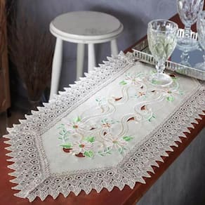 Caminho para Mesa Jolitex Bordado e Rendado Cancun 0,40cmx 2,20m Bege Decorar a mesa com caminho de mesa vai deixar sua mesa mais bonita e os seus jantares e momentos de confraternização ainda mais especiais, pois uma mesa bem decorada pode mudar totalmente o ambiente onde a refeição está sendo realizada. O caminho de mesa Cancun da Jolitex Ternille é confeccionado em poliéster na cor bege com rendas e bordados delicados. Caminho para Mesa Jolitex Bordado e Rendado Cancun 0,40cmx 2,20m Bege Todas as informações divulgadas são de responsabilidade do fabricante/fornecedor. Marca: Jolitex Classificação: Caminho de Mesa Tecido: Poliéster Composição: 100% Poliéster Conteúdo e Medidas: Caminho para Mesa Bordado e Rendado - Cancun - 01 Peça Tamanho 0,40cmx 2,20m Produto por Jolitex Coleção / Sortimento: Mesa Bordado: Sim Cor: Bege Fabricante: China Código de Barra: 7896176878993 fabricante : Contra Defeito de Fabricação Imagens Meramente Ilustrativas INFORMAÇÕES IMPORTANTES: Item composto apenas por 01 Caminho de Mesa, os demais itens são meramente decorativos e NÃO fazem parte do conteúdo da embalagem. Aviso : - Todas as medidas são valores aproximados e podem sofrer alguma variação. - As cores podem sofrer uma pequena variação, dependendo do lote do produto e das configurações do seu computador. Marca: Não Informado