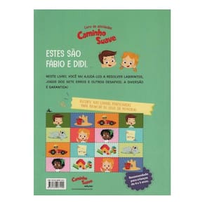 É hora de diversão! O Livro de atividades Caminho Suave traz passatempos e desafios educativos para crianças de 4 e 5 anos. São labirintos, jogos dos sete erros, desenhos para colorir e muitas outras brincadeiras inspiradas na famosa Cartilha Caminho Suave de alfabetização. Com este livro, seus filhos, netos e amiguinhos vão brincar e desenvolver suas habilidades.