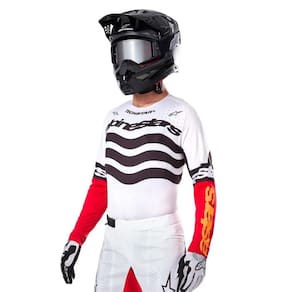 Detalhes técnicos que fazem a diferença: Gola com abertura sem costuras e punhos colados, garantindo conforto e praticidade na hora de vestir; Estrutura sem costuras laterais e axilares, reduzindo pontos de atrito e aumentando o conforto; Parte traseira alongada, ideal para cobertura total e integração com as calças MX da Alpinestars; Malha stretch com corte multidirecional, acompanhando os movimentos naturais do corpo; Corte anatômico em múltiplos painéis, otimizando o encaixe nos ombros, braços e costas.