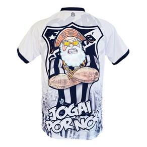 A camisa do Ceará SC masculina é de mangas curtas, com gola em formato especial.