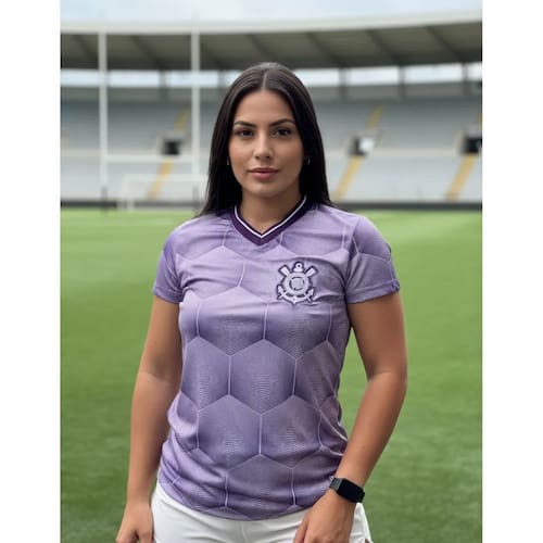 O escudo bordado do Corinthians destaca-se na peça, simbolizando a paixão e a tradição do clube. Com uma paleta de cores roxa, esta camisa se destaca entre as opções disponíveis, permitindo que você se diferencie enquanto apoia seu time do coração.