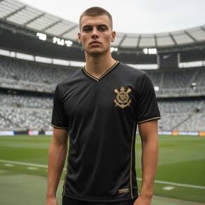 Mostre sua paixão pelo Timão com estilo e sofisticação. A camiseta masculina Corinthians preta com detalhes dourados traz um visual moderno e imponente, ideal para torcedores que gostam de se destacar dentro e fora dos estádios.
