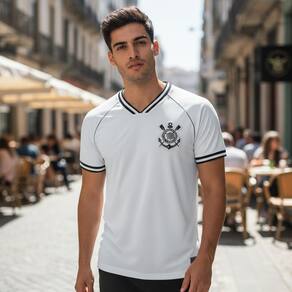 Ideal para momentos de celebracao, a camisa possui gola V e mangas curtas, proporcionando um ajuste leve e arejado. Seja para um passeio ou para torcer em casa, esta peca é versátil e se adapta ao seu estilo. A edicao especial da camisa é uma homenagem ao Corinthians, um dos maiores clubes do Brasil, e é perfeita para qualquer fa que deseja mostrar seu amor pelo time.