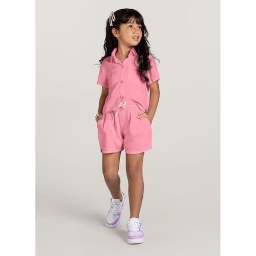 Camisa cropped infantil menina Brandili Rosa - Rosa - 4