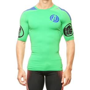 Camisa de compressão Adidas Techfit, edição especial Marvel Vingadores, modelo Hulk foi feita para atletas de ponta fãs dos desenhos Marvel. Produto de alta tecnologia com estampas alusivas a personagens.