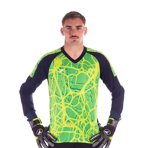 Produzida em tecido respirável de alta qualidade, oferece leveza e liberdade de movimentos, além de estampa vibrante que traz estilo para dentro de campo. Para maior segurança, conta com espumas nos braços, que ajudam a absorver impactos durante as defesas. Também possui tecnologia de proteção UV, que protege a pele contra os raios solares em treinos ao ar livre.