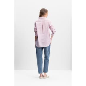 Camisa adulta feminina confeccionada em tecido Bearritz Tinto, que oferece um toque refinado e um caimento perfeito. Com abertura de botões e gola clássica, a peça possui manga longa e fendas laterais, trazendo um equilíbrio entre elegância e conforto. Ideal para criar composições sofisticadas e versáteis.