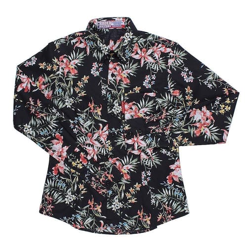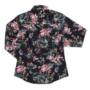Camisa floral estampada feminina Rodeo Western fabricada em tecido 100% Algodão na cor Preta. Possui mangas longas, bolso no peito e fechamento por botões.