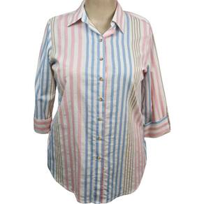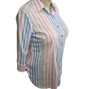 Camisa Feminina Lu Ripper Manga 3/4 Listras Linho.