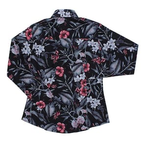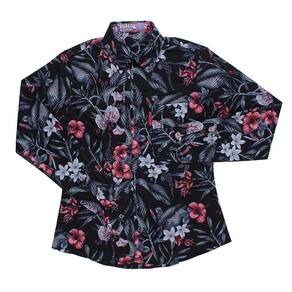 Camisa floral estampada feminina Rodeo Western fabricada em tecido 100% Algodão na cor Preta. Possui mangas longas, bolso no peito e fechamento por botões.