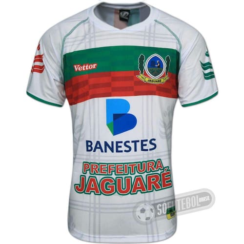 JAGUARÉA cidade de Jaguaré, no Espírito Santo, tem pouco mais de 21 mil habitantes e respira futebol. O Botafogo Futebol Clube de Jaguaré foi fundado em 1981, sendo popularmente conhecido e tendo trocado de nome para Colinon Futebol Clube. Mudaram as cores, o nome, mas não a paixão de seus torcedores. O time manda seus jogos no estádio Centro Esportivo Colinon, com capacidade para 5 mil pessoas.INFORMAÇÕES TÉCNICASEquipe: JaguaréModelo do Uniforme: II (Reserva)Temporada: 2013Estado: Espírito SantoPaís: BrasilContinente: América (do Sul)Composição: 100% PoliésterGola: CarecaFabricante: VettorPatrocínio: Banestes, Prefeitura de Jaguaré, Santa Gertrudes Escudo: BordadoManga: CurtaOrigem: BrasilConteúdo da Embalagem: 01 CamisaDADOS TÉCNICOS*Peso aproximado do produto: 0,181 kgDimensões aproximadas do produto (Largura x Comprimento): P: 50 x 70 cmM: 52 x 72 cmG: 54 x 74 cmGG: 56 x 76 cmDimensões aproximadas da embalagem (Largura x Espessura x Comprimento): 26,0 x 0,5 x 34,0 cm* Informações sujeitas a alterações.Nota Importante: As imagens das costas das Camisas com número que aparecem no site, são imagens meramente ilustrativas dos produtos. Tais camisas já vêm com números de origem, aplicados pelos próprios fabricantes. Os números fornecidos pelos fabricantes são aleatórios e variados. Não há como se garantir que o Cliente receberá o mesmo número que figura na foto. As nossas entregas até procuram atender a um determinado número, quando o Cliente indica sua preferência, no campo de observações do Pedido. Entretanto, trata-se apenas de uma intenção, visto que, como dissemos, as Camisas chegam de Fábrica com numeração aleatória, em quantidades díspares entre si.