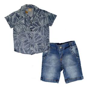 Camisa jeans e Bermuda de algodão - G (9 a 12 meses) , 1 ano, 2 anos - 2 peças