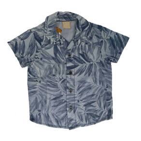 Uma camisa jeans clássica já é muito legal, com estampa de folhagens então, é maravilhosa! Tem corte clássico, mangas curtas e botões. Macia e confortável.
