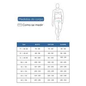 Medidas da Modelo: Altura: 177cm, Cintura: 84cm, Quadril: 101cm, Tórax: 102cm