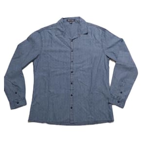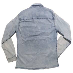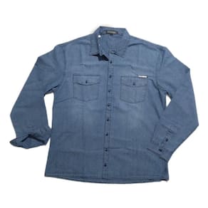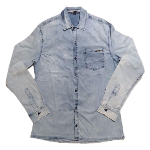 Camisa Masculina Jeans com detalhes e lavagem/tingimento moderno.
