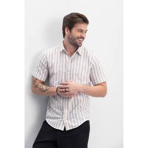 Camisa masculina adulta confeccionada em Biarritz, que é um tecido leve e de toque suave, caracterizado por um efeito visual rústico e de ótimo caimento. Com abertura de botões frontal, essa peça oferece praticidade e elegância, enquanto a gola polo adiciona um toque tradicional. A camisa possui manga curta, ideal para os dias mais quentes, e as listras proporcionam um visual sofisticado, perfeito para ocasiões casuais ou semiformais. Marca: Não Informado
