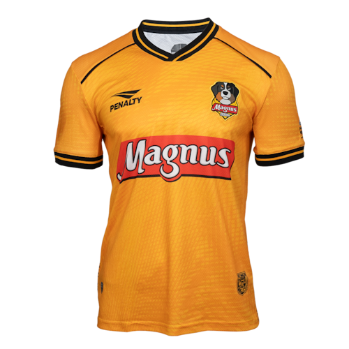 A nova camisa oficial do Magnus Futsal 2025 chega com um visual impactante, inspirado na Arena Sorocaba, palco das maiores conquistas do time. O modelo traz a cor laranja como destaque, com detalhes em preto e amarelo que remetem à estrutura da arena, como as treliças e venezianas presentes no ginásio. A gola em V e os punhos contrastantes completam o design moderno e cheio de identidade.