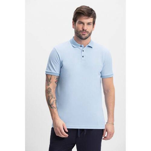 Camisa polo masculina em piquet comfort Essendi - P - Azul Claro - M