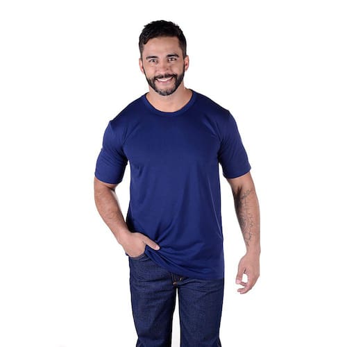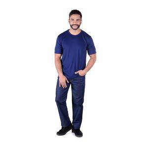 Destaque-se com elegância no ambiente profissional com a Camisa Profissional Masculina Gola Careca Manga Curta em tom Azul Marinho. Esta camisa é cuidadosamente desenvolvida em tecido de malha, proporcionando não apenas um visual refinado, mas também conforto duradouro.