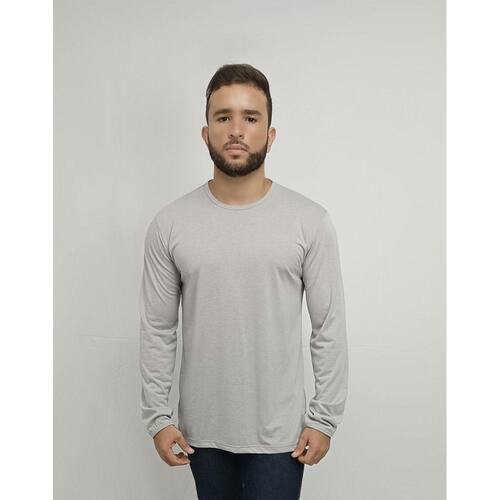 Especificações: Camisa Profissional Masculina Gola Careca Manga Longa em Malha PV - Cinza