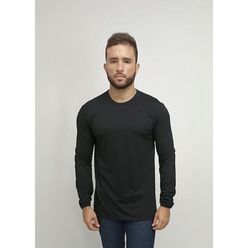 Especificações: Camisa Profissional Masculina Gola Careca Manga Longa em Malha PV - Preto