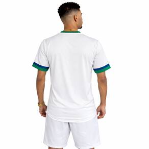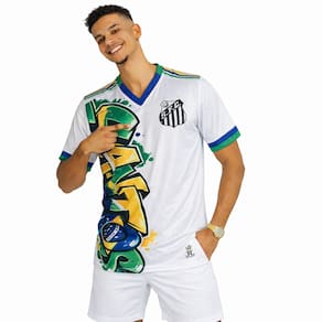Camisa Santos Brasil Seleção Quebrada Brasileira Copa Branca. Modelo exclusivo com design inspirado na identidade do futebol brasileiro, combinando o estilo do Santos com elementos da seleção em uma proposta urbana. Confeccionada em tecido leve e resistente, proporciona conforto para o uso diário. Ideal para torcedores e para quem busca uma peça diferenciada para compor o visual.