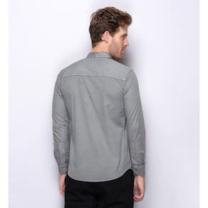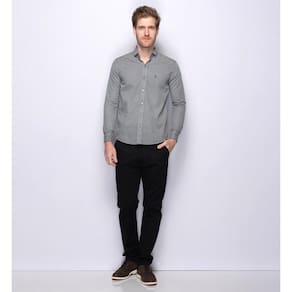 Camisa social manga longa com estampa maquinetada luxuosa discreta em algodão fio 50. Corte slim fit, botões personalizados, barra levemente arredondada e mangas mais justas desde a axila, que se ajustam perfeitamente ao corpo. Esta peça confere ar formal e ao mesmo tempo moderno. Gola tradicional mais encorpada, ideal para gravatas. Logo da marca bordado.