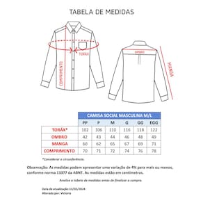 Camisa social SLIM manga longa é confeccionada em tecido Tricoline, composição 57% poliéster e 43% algodão.