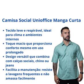 Camisa Social Unioffice Manga Curta Elegância e Conforto para o Trabalho A Camisa Social Unioffice Manga Curta é a escolha perfeita para quem busca um visual alinhado e funcional em dias mais quentes. Com modelagem clássica e acabamento de qualidade, garante caimento impecável e liberdade de movimento ao longo do expediente.