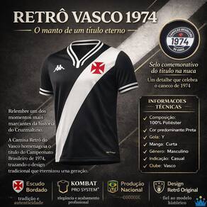 Relembre um dos momentos mais marcantes da história do Vasco da Gama com a Camisa Kombat Home Vasco 74, um manto que homenageia a conquista do Campeonato Brasileiro de 1974. Inspirada no uniforme que marcou esse título histórico, a camisa apresenta design clássico e elegante, trazendo o escudo do Gigante da Colina bordado no peito, reforçando a identidade cruzmaltina. Na parte traseira, o selo comemorativo aplicado na nuca celebra o caneco de 1974, eternizando esse momento inesquecível para o torcedor. Além do visual tradicional, o modelo alia conforto e tecnologia. Confeccionada em tecido de alta performance com tecnologia Quick Dry, a camisa auxilia no afastamento do calor da pele, garantindo secagem rápida e mantendo o corpo fresco e seco durante o uso — ideal para o dia a dia, lazer ou momentos casuais.