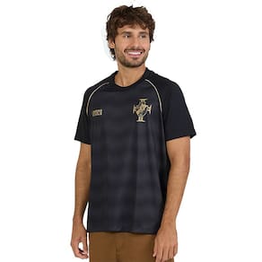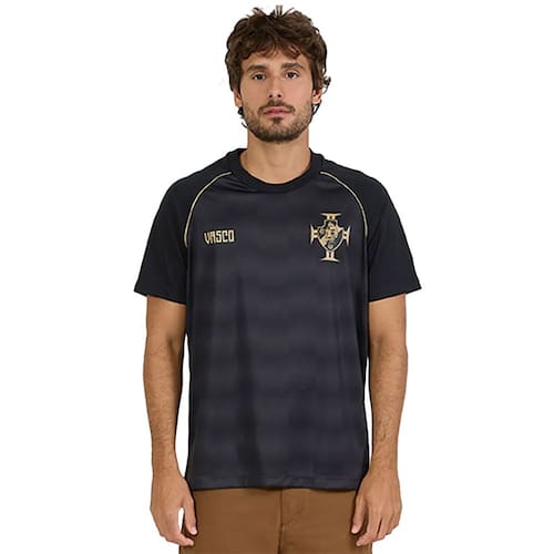 · Acabamento Premium: Possui gola careca e mangas curtas, com o escudo do Vasco em destaque no peito (termo-aplicado ou silkado), reforçando a identidade do clube.