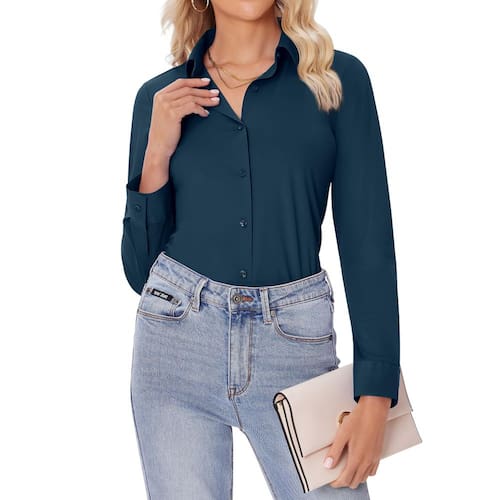 Apresentamos nossas camisetas femininas siliteelon de botão, o complemento perfeito para o seu guarda-roupa de trabalho. Estas camisas sociais de manga comprida são projetadas com uma textura suave e sedosa e trabalhadas com materiais da mais alta qualidade para uma sensação luxuosa. Nossas camisetas elásticas oferecem o máximo de conforto e flexibilidade, tornando-as a escolha ideal para o seu dia de trabalho agitado. Com um acabamento sem rugas, estas blusas de escritório são perfeitas para quem está em movimento, garantindo que você sempre pareça elegante e arrumada. O design clássico de botões adiciona um toque de sofisticação, tornando essas camisetas perfeitas para ocasiões formais e casuais. Nossas blusas versáteis podem ser vestidas para um visual profissional ou para uma vibe mais casual, tornando-as um item essencial no armário de qualquer mulher. As camisetas siliteelon são conhecidas por sua qualidade excepcional e estilo atemporal, tornando-as uma escolha popular entre os profissionais que trabalham. Escolha entre uma variedade de cores e tamanhos para encontrar o ajuste perfeito e elevar sua roupa de escritório com nossas camisas de botão confortáveis, mas elegantes. Atualize seu guarda-roupa de trabalho com nossas camisas versáteis e experimente a combinação perfeita de estilo e conforto. Compre agora e faça uma declaração com nossos tops profissionais de escritório. - Design de ajuste elástico: melhore seu estilo e conforto com nossas camisetas femininas de botão com ajuste elástico. O tecido elástico sem rugas mantém você polido e confortável o dia todo, seja no trabalho ou em movimento - Design prático: estas camisas sociais para mulheres oferecem um fecho de botão profissional e mangas compridas para maior cobertura. Perfeita para reuniões de negócios, trabalho ou passeios casuais, combinando estilo e funcionalidade - Versátil e fácil de combinar: a camisa de manga longa feminina combina facilmente com calças, blazers, jeans, shorts ou leggings. Ideal para o escritório, reuniões ou uso diário, durante todo o ano - Perfeita para todas as ocasiões: seja no trabalho, em uma reunião, em uma festa ou em viagens, esta camisa feminina de botão é versátil e de alta qualidade, perfeita para qualquer situação - Fácil de cuidar: a camisa de trabalho para mulheres é simples de manter, lavar à mão ou na máquina. Mantenha seu guarda-roupa fresco sem complicações