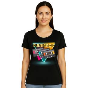 Camiseta Adulta Manga Curta Temática Flash Back Estampa Fitas.
