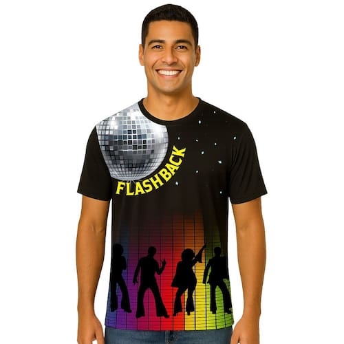 Camiseta Adulta Manga Curta Temática Flash Back Retrô.
