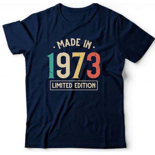 Camiseta algodão cronológicas- Made in 1973 - Azul Marinho - G