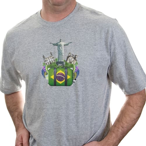 Camiseta algodão geografia - Cristo redentor - Cinza - GG