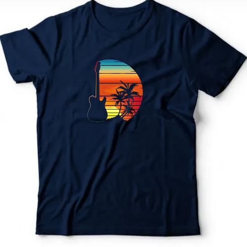 Camiseta algodão pets & natureza - Guitarra Sunset - Azul Marinho - G