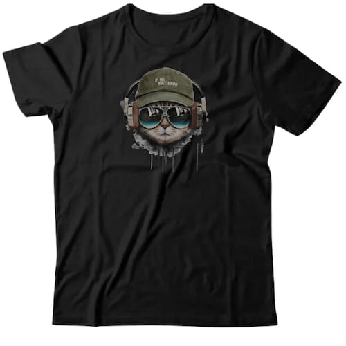 Camiseta algodão pets & natureza - Musical Cat - Preto - M