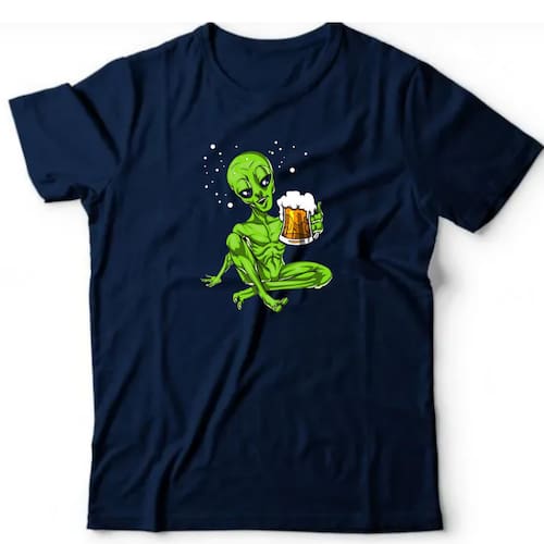 Camiseta algodão ufologia - Alien cervejeiro - Azul Marinho - M