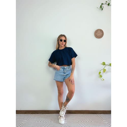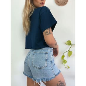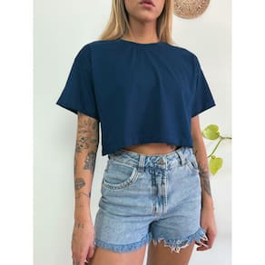 A camiseta cropped é uma peça confortável e versátil, perfeita para os dias mais quentes. Feita com tecido de algodão macio, ela oferece um caimento agradável e é ideal para compor looks casuais e descolados.
