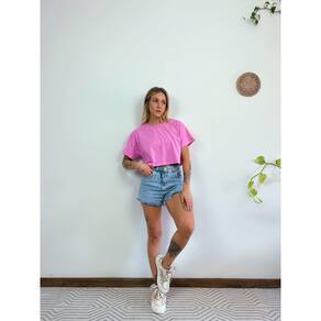 A camiseta cropped é uma peça confortável e versátil, perfeita para os dias mais quentes. Feita com tecido de algodão macio, ela oferece um caimento agradável e é ideal para compor looks casuais e descolados.