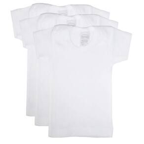 Este pacote essencial de camisetas é uma peça básica perfeita para combinar com qualquer calça que você desejar. Com tecido respirável 100% algodão, esta roupa certamente manterá seu pacote de alegria confortável o dia todo. Tamanhos: NB, S, M, L3 por pacote. Cor: branca, 100% algodão, costela para respirabilidade e conforto. O decote no ombro com botão de pressão ajuda a puxar a roupa com muita facilidade sobre a cabeça do bebê. Lavar/secar na máquina. Roupas de bebê para cada recém-nascido que precisa de roupas.