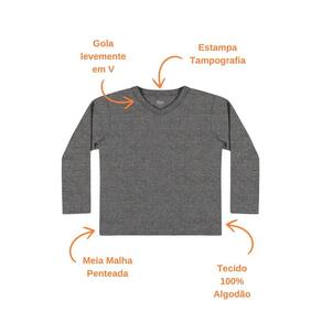 Camiseta Básica Malha Grafite Algodão Manga Longa Infantil Menino - Ideal para todas ocasiões e compor seu look