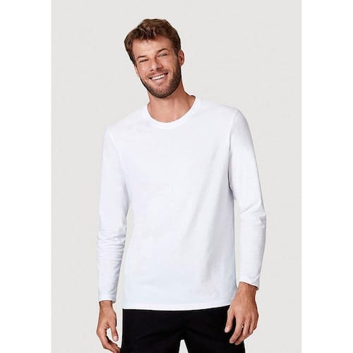 Camiseta básica masculina Hering, confeccionada em malha de algodão. Não possui costura lateral. É confeccionada com modelagem world que é reta e solta, mangas longas, decote redondo com acabamento em malha canelada e cavas levemente deslocadas. A malha de algodão tem caimento leve, toque suave e fresco. Para os dias mais fresquinhos, invista nessa peça versátil e cheia de conforto.