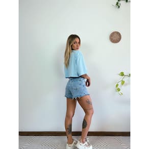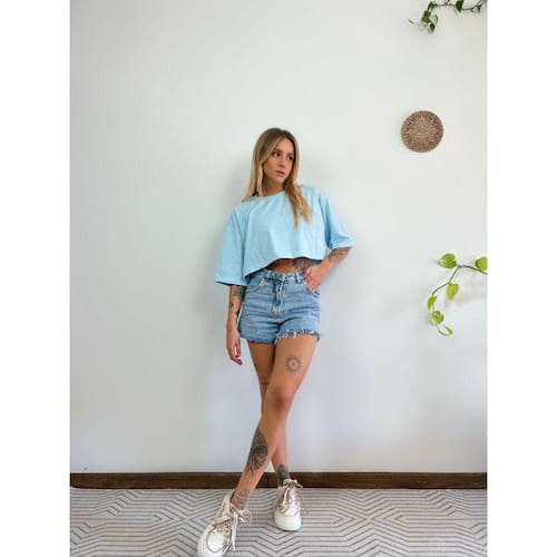 Camiseta Cropped Oversized Aveloz- Azul Claro - Azul Claro - P