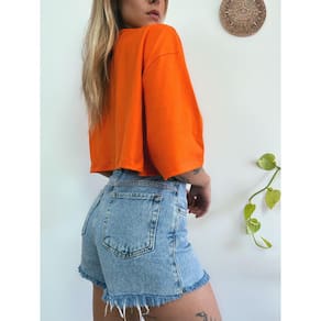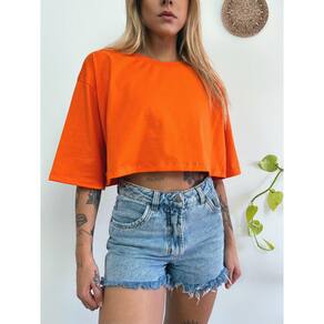 Camiseta Cropped Oversized Aveloz- Laranja - Laranja - PP