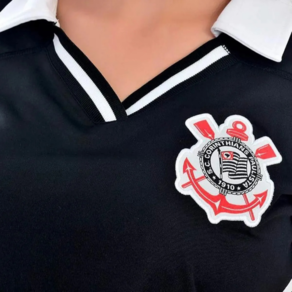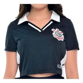 Camiseta Cropped Polo Corinthians Logo Bordado - Preto - P