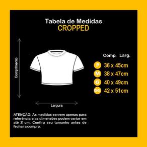 Medidas CROPPED COMPRIMENTO X LARGURA P = 40 cm x 46 cm M = 42 cm x 48 cm G = 44 cm x 50 cm GG = 46 cm x 52 cm