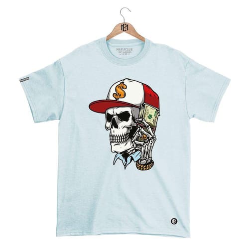 Camiseta DBL Gola Redonda Estampa CAVEIRA Streetwear fio 30.1 Penteado. - Azul Claro - GG